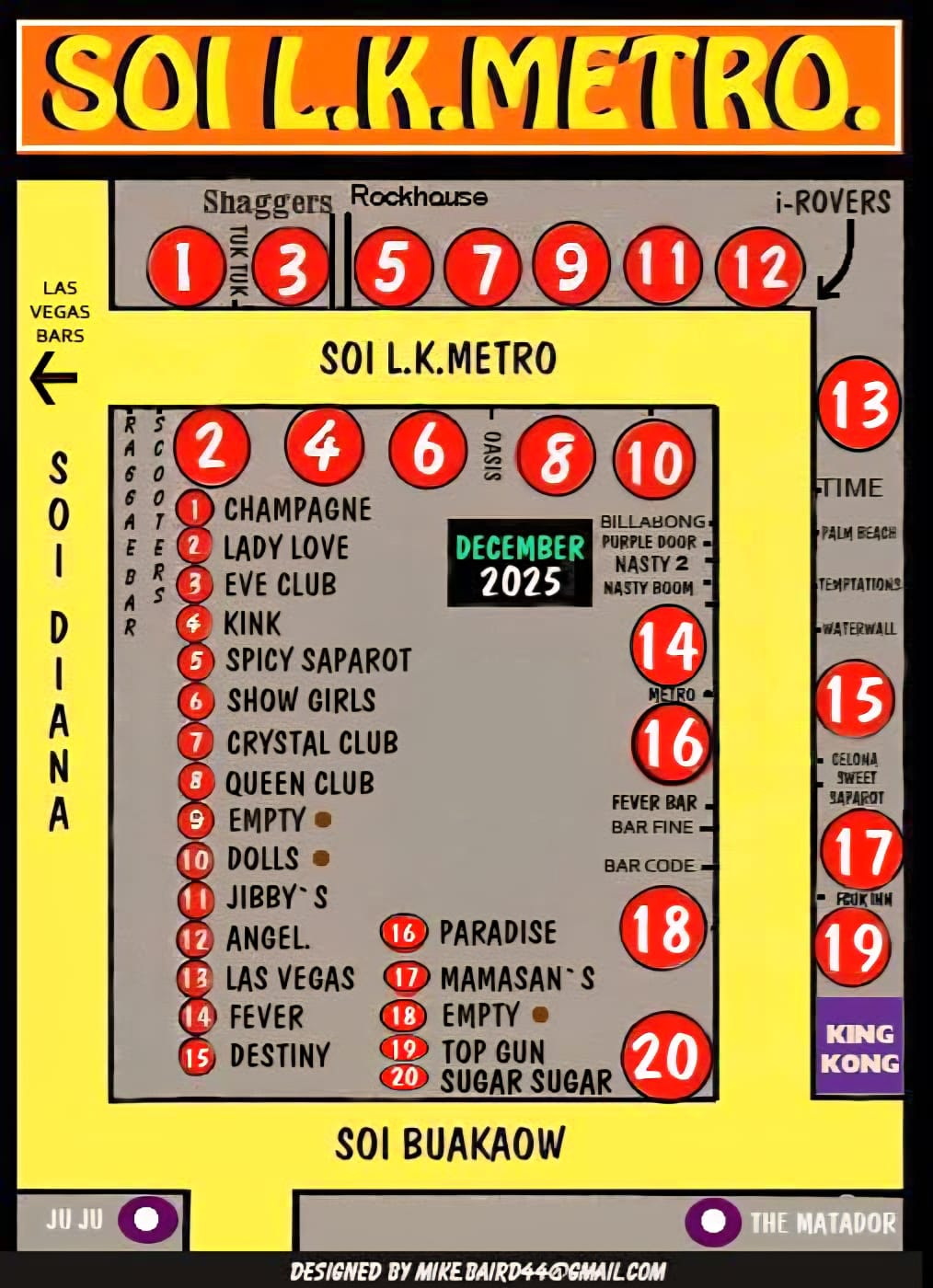 | Come da mappa soi LK Metro completa una sorta di quadrilatero con soi Diana e soi Buacow ed è prevalentemente affollata di gogo e beer bars |